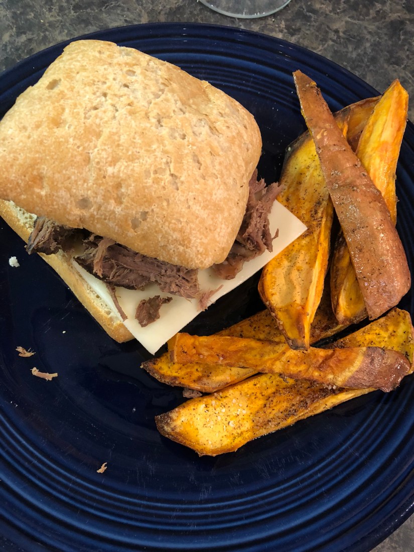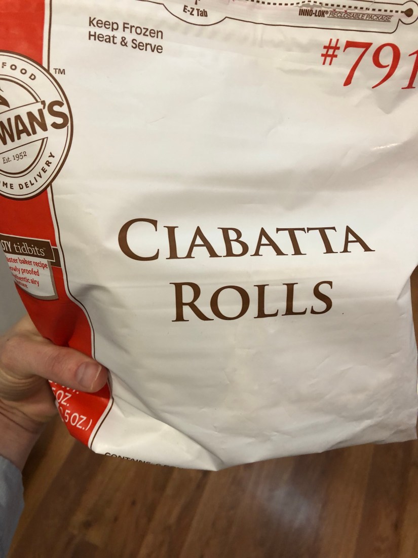 I buy frozen Ciabatta rolls, they are delicious and work perfectly for a girl who lives 15 minuets from the nearest grocery store. I heated a couple of these in the oven after I made the sweet potato fries.