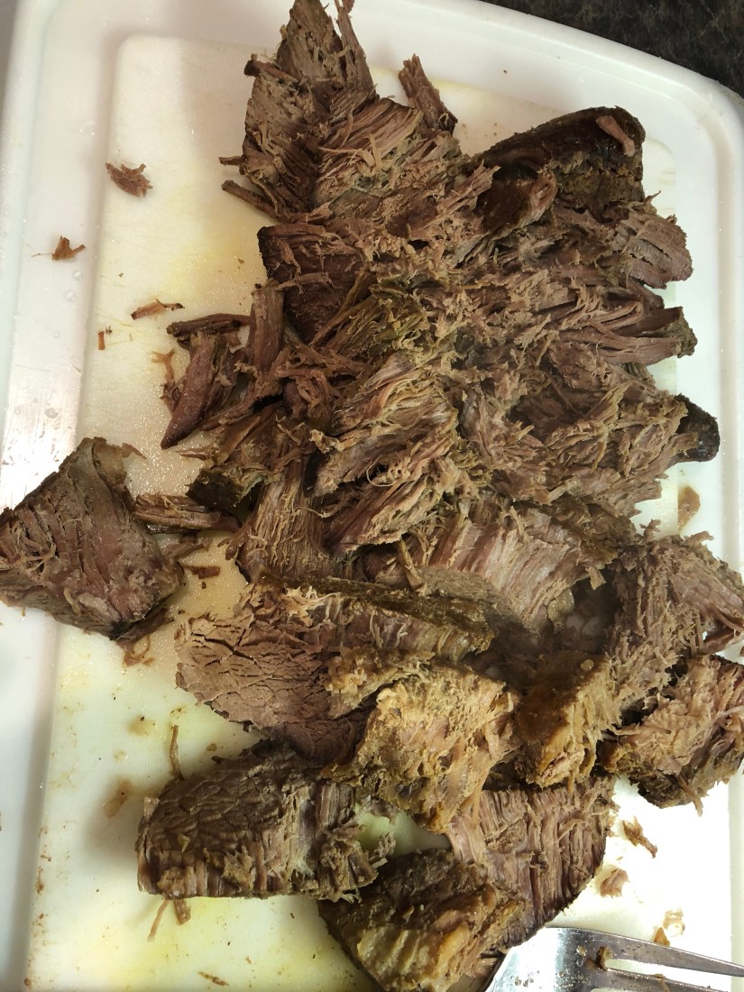 So, I put a 3-4 pound roast in our crockpot and seasoned it with season salt and pepper. I also added a little water and put it on low so it could cook all day. This could also be done in your instant pot..just don’t ask me how. 😉