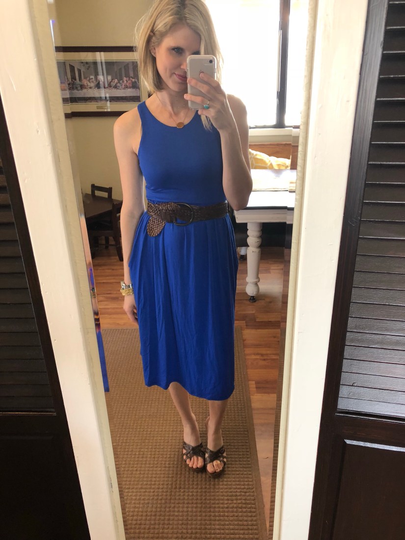 Why am I digging this dress?? It’s forgiving, you can wear a real bra, and its versatile (wear with a denim jacket, blazer, wrap or kimono). Also it could be dressed up or down, heels or flips flops. The last thing I love , and this shows my age group: you could wear it before, while and after pregnancy!!