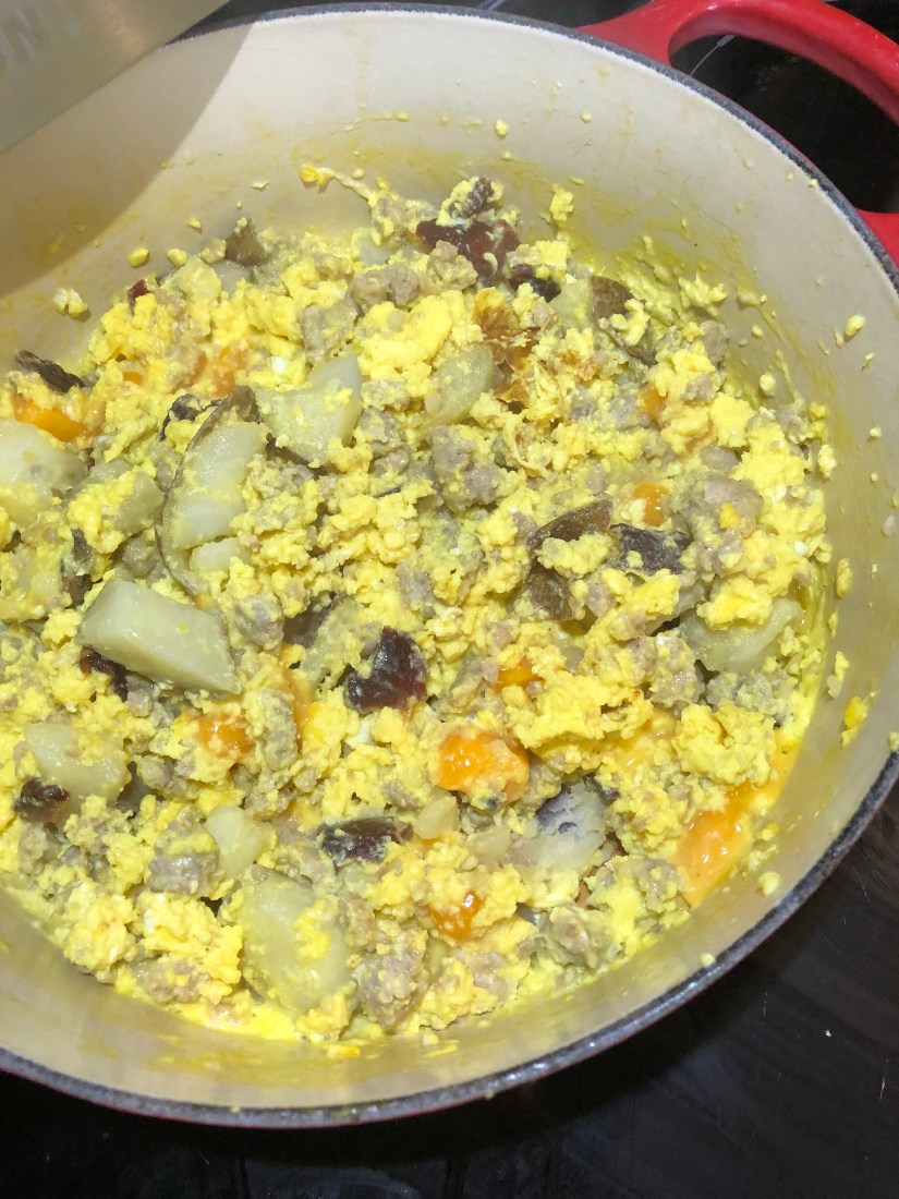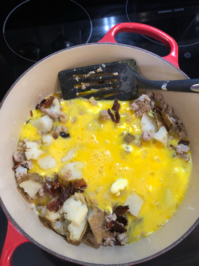 So, this morning I had two cooked potatoes and cooked sausage..the perfect breakfast was brewing!!
