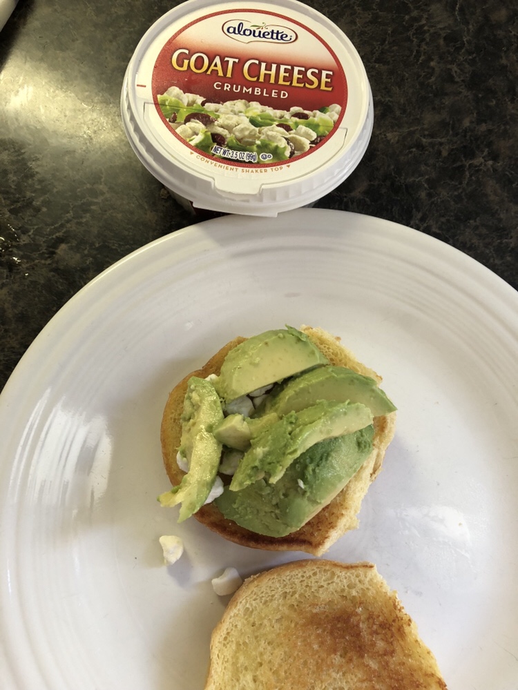 I wanted to try something new on my burger. After searching through the fridge, I found crumbled goat cheese and an avocado. Might as well see what that combo tasted like…MUAH! Delicious!