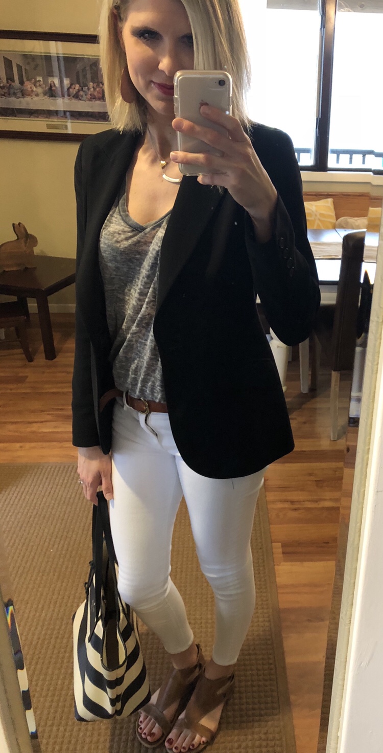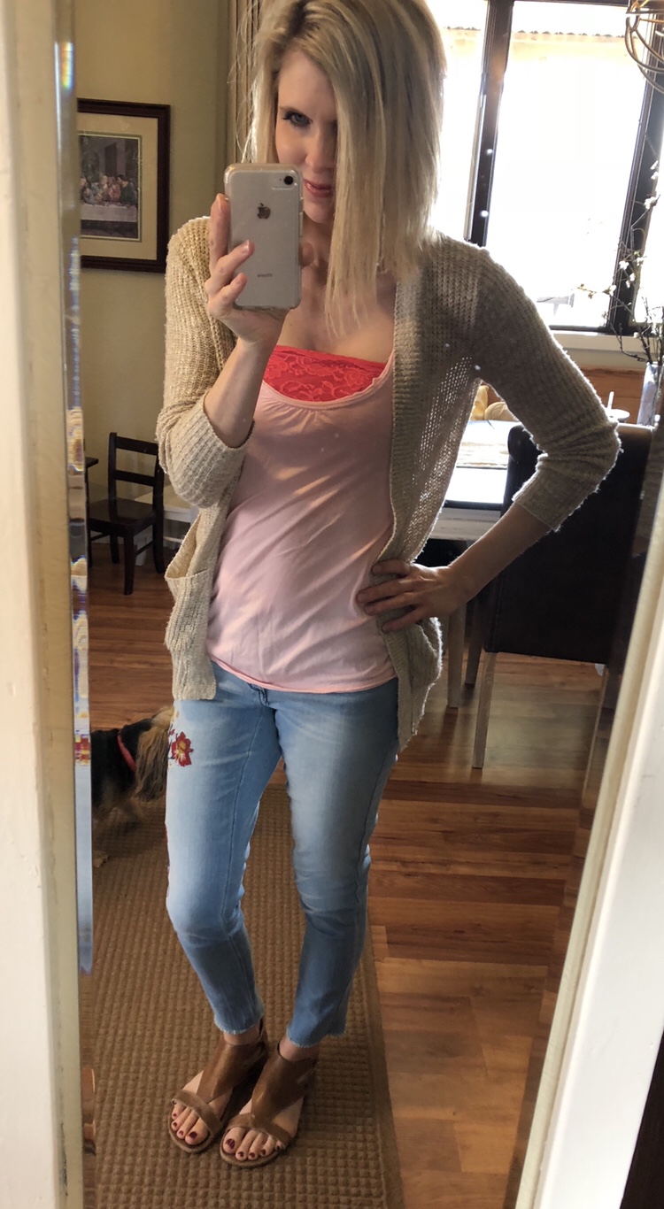 My more casual look for the day. Has anyone noticed that I painted my toenails?? This is a big deal for me. I’d rather have a pedicure, but this momma has no time to go. 😩