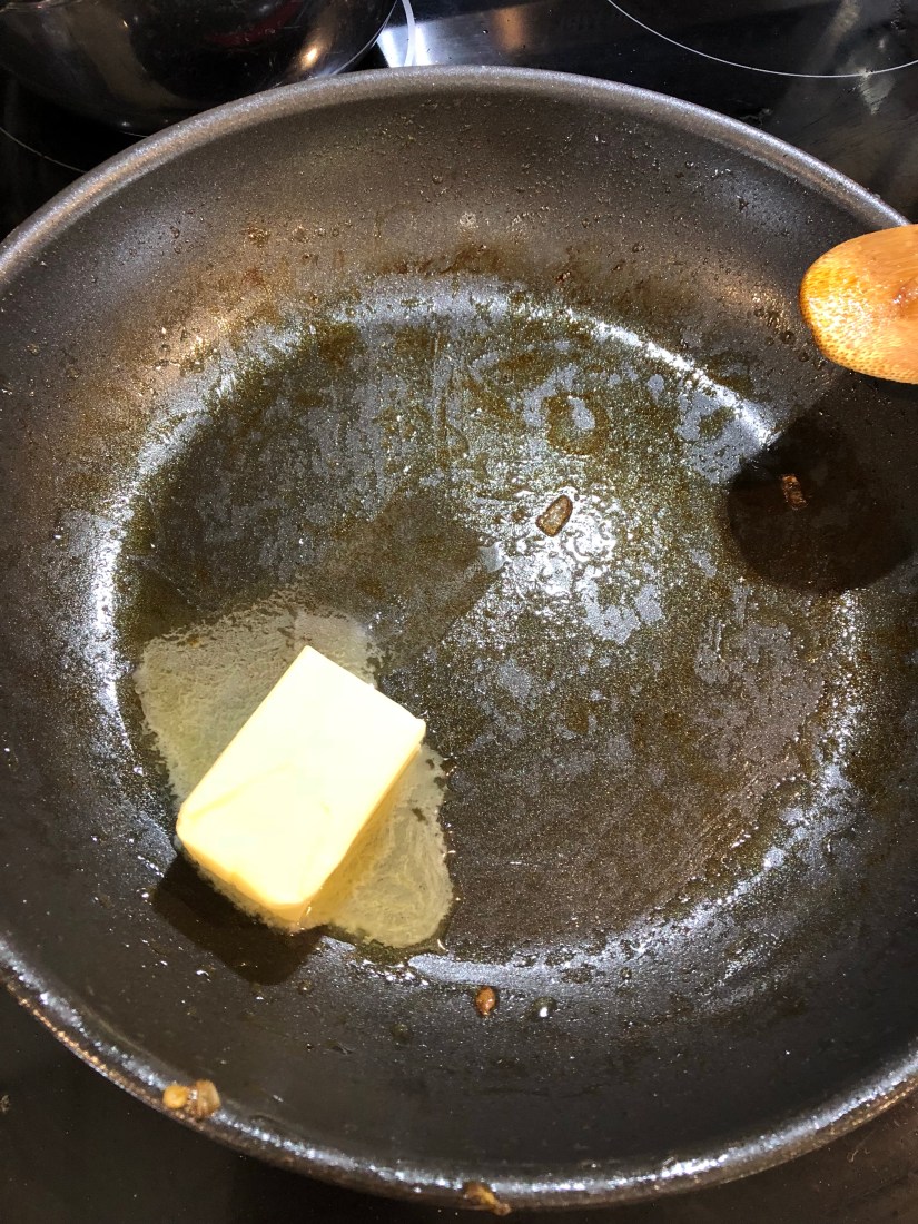 Melt 3 tablespoons of butter in the pan you used for the veggies.