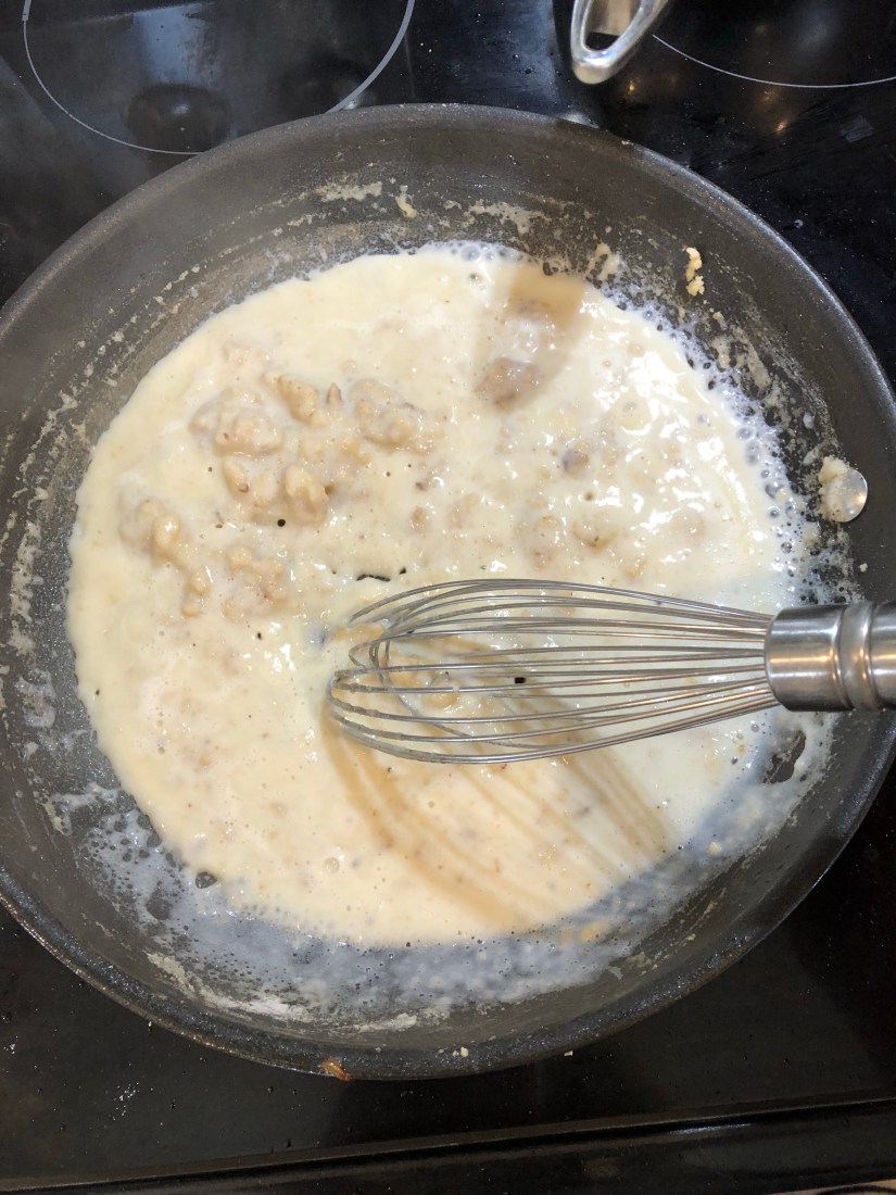 Add 2 tablespoons of four and whisk around in the melted butter.