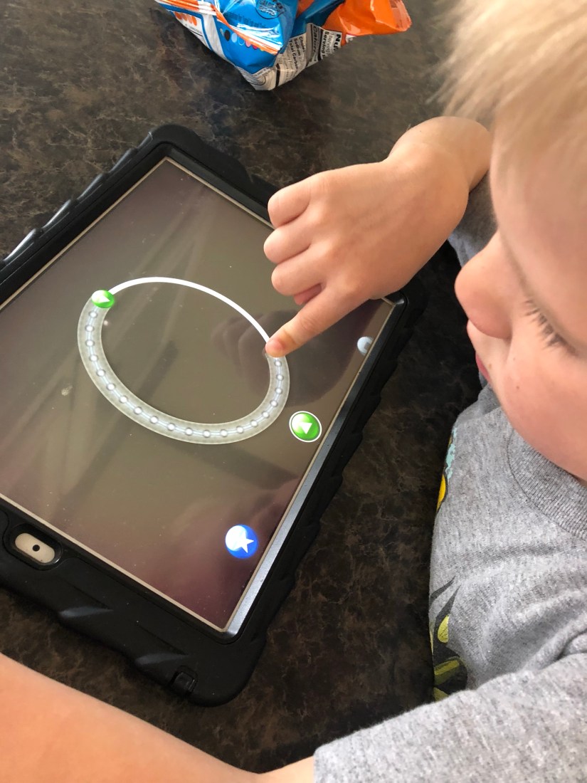 Sammy loves learning new letters. I always start with my favorite writing app, Letter School. I love this app because if literally forces kids to use the correct letter formation. Also, its fun. There are uppercase, lowercase, numbers and two different styles of letters. It’s an all around amazing app.