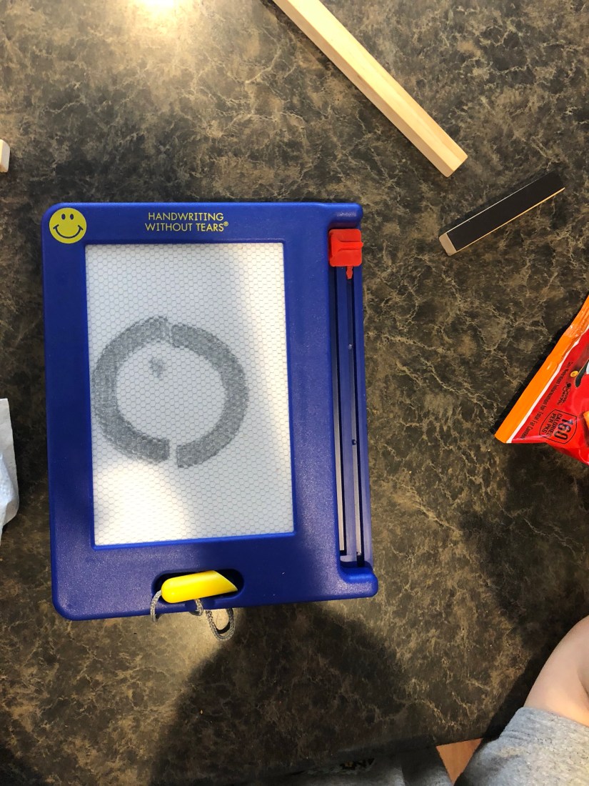 Next we used this great magnetic board to practice making the letter O.