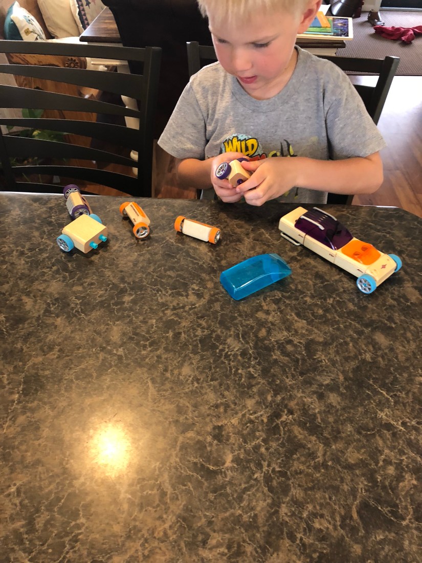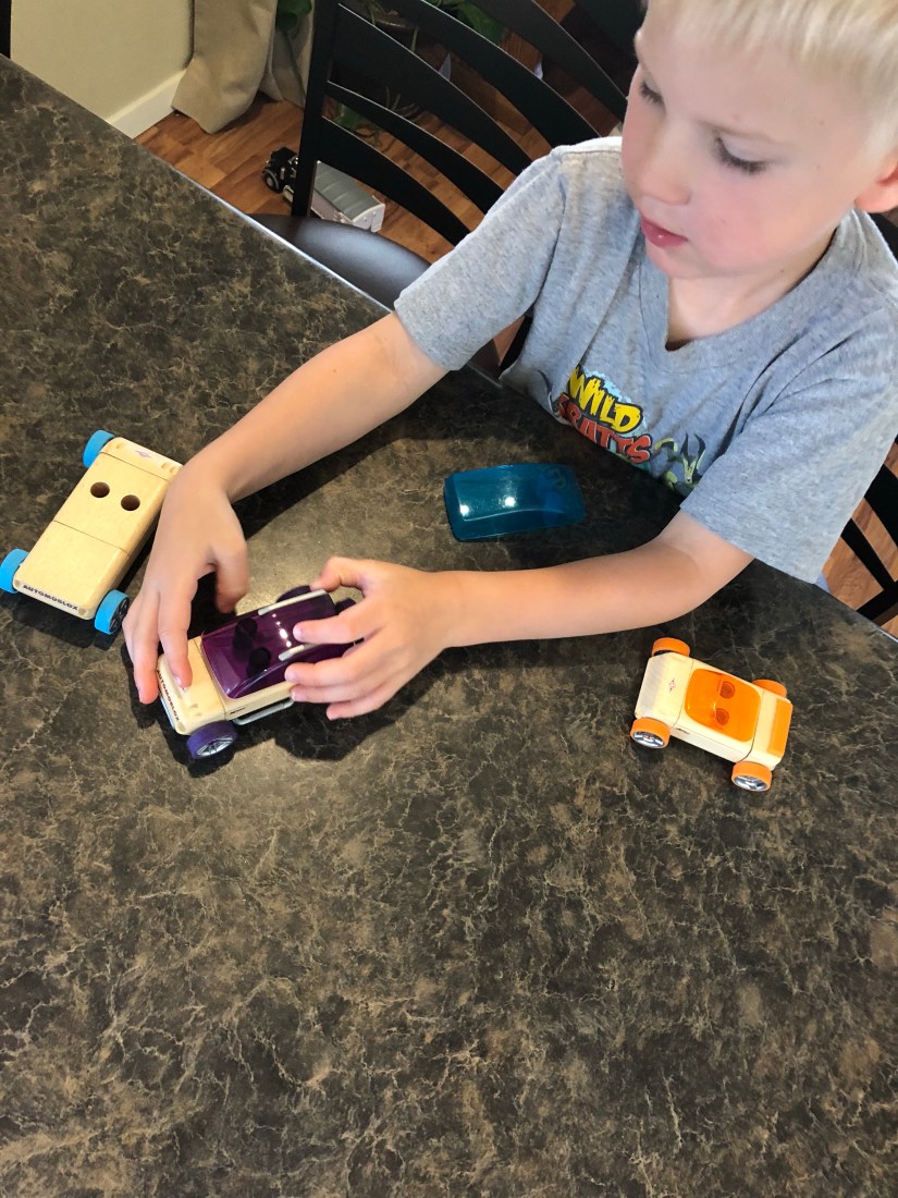 These little cars are SOO much fun. By the way, I keep preschool stuff put away. I need these toys and learning activities to be new and exciting. I also use them when my kids are younger for busy boxes. I’ll blog about that soon!!