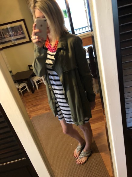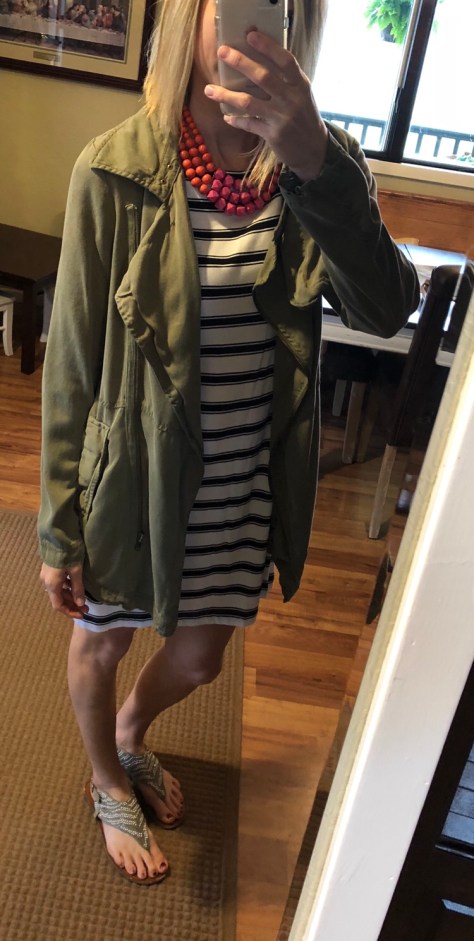 Exact Dress (wearing extra small). Similar necklace, sandals, and jacket.