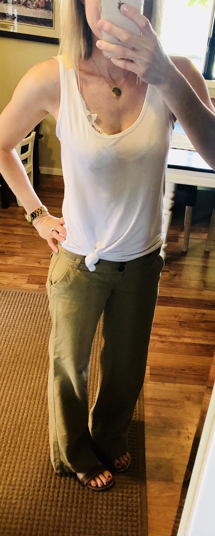 Exact tank (wearing small), bralette (xs), and shoes (true to size. Similar pants (wearing size 2 from AE).