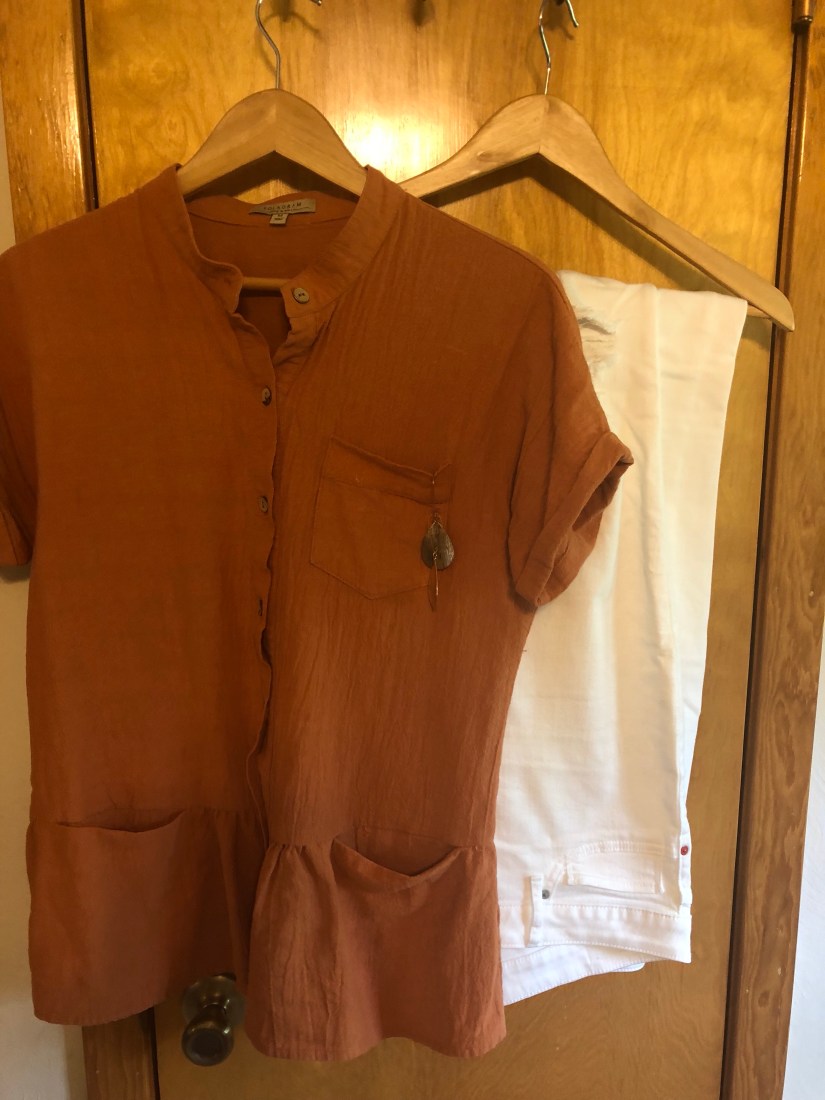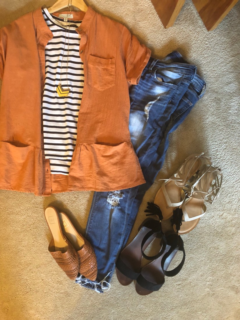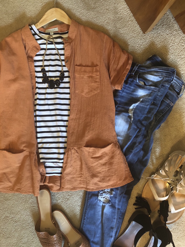 The first thing I picked up, was a new top she had purchased. I instantly unbuttoned it, and started using it as a jacket. Michelle’s view of this top instantly changed and right away we turned a top into several different outfits.
