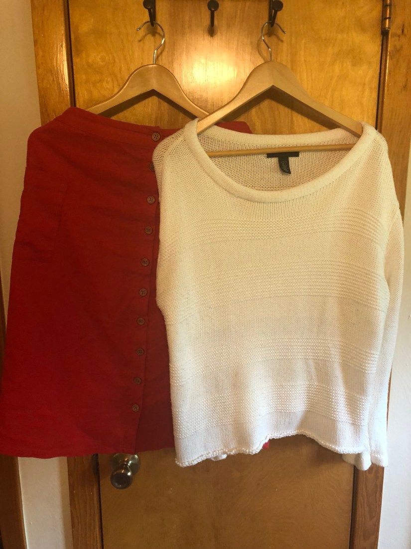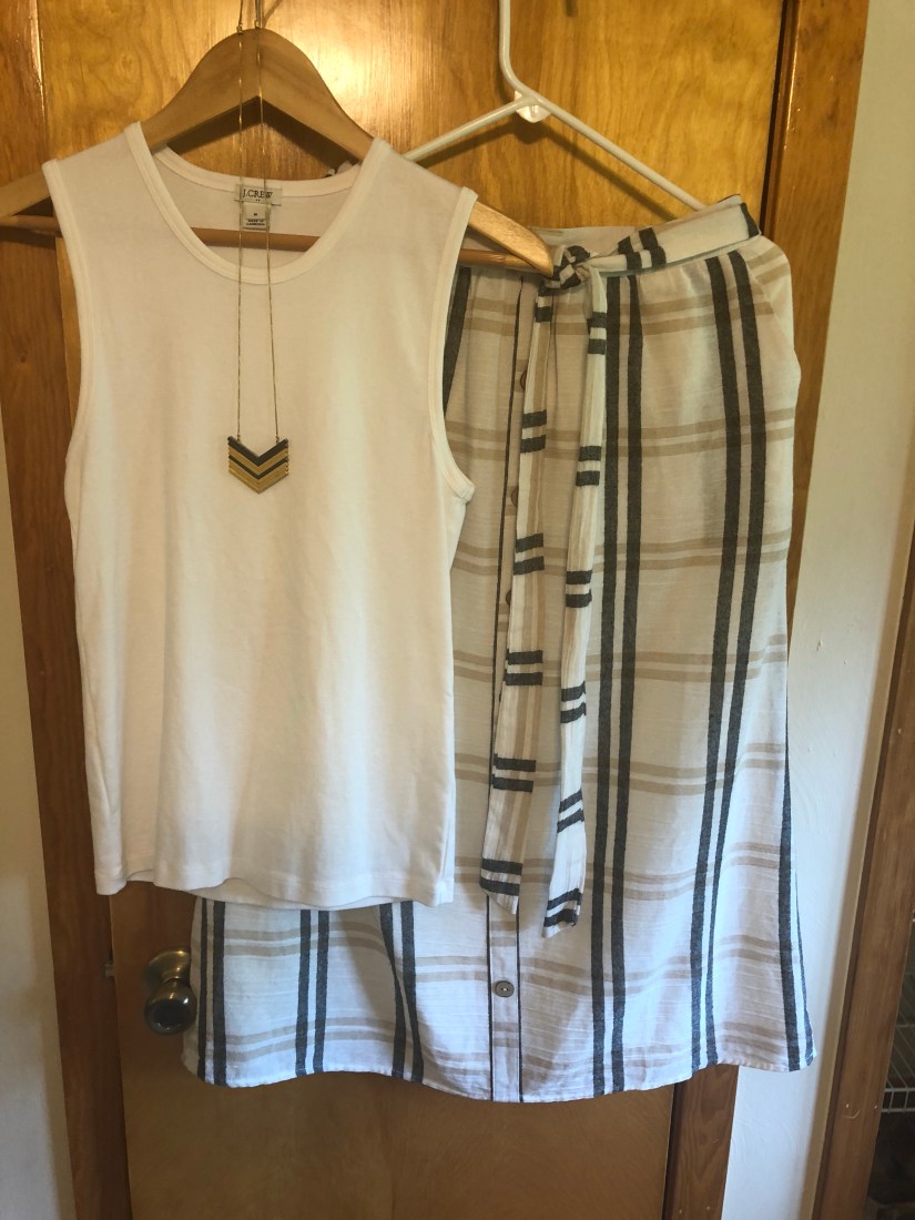 Next, we looked at a skirt and talked about other ways to wear this favorite of hers, besides what she had already been doing. I suggested that she think toward fall with this skirt, too!!