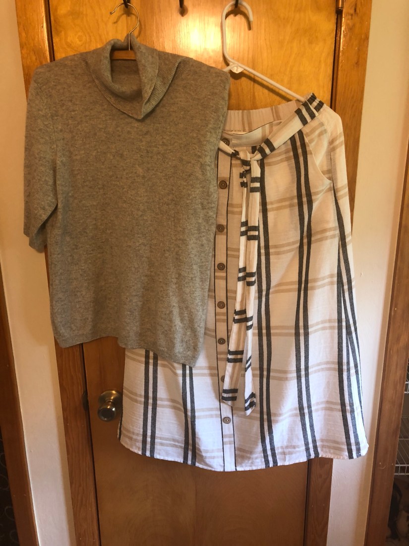 I told Michelle that I wanted her to lay out some of her favorite closet pieces on her bed, and things that she is not quite sure what to do with, and I would come play “dress up” in her closet. Something you need to know about this amazing human, I’m able to call my sister, is she read a book a few years back, and got rid of everything she didn’t love in her closet. (https://amzn.to/2Kkl7wR)