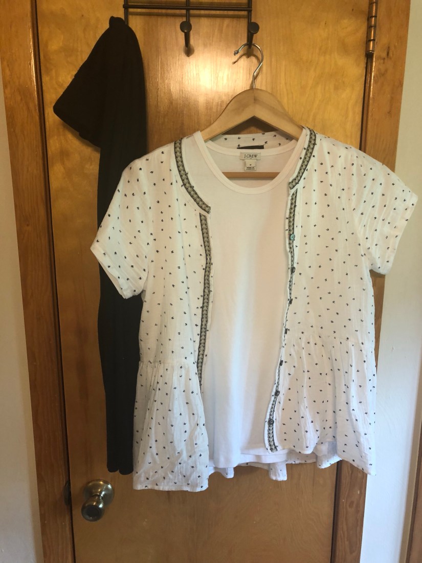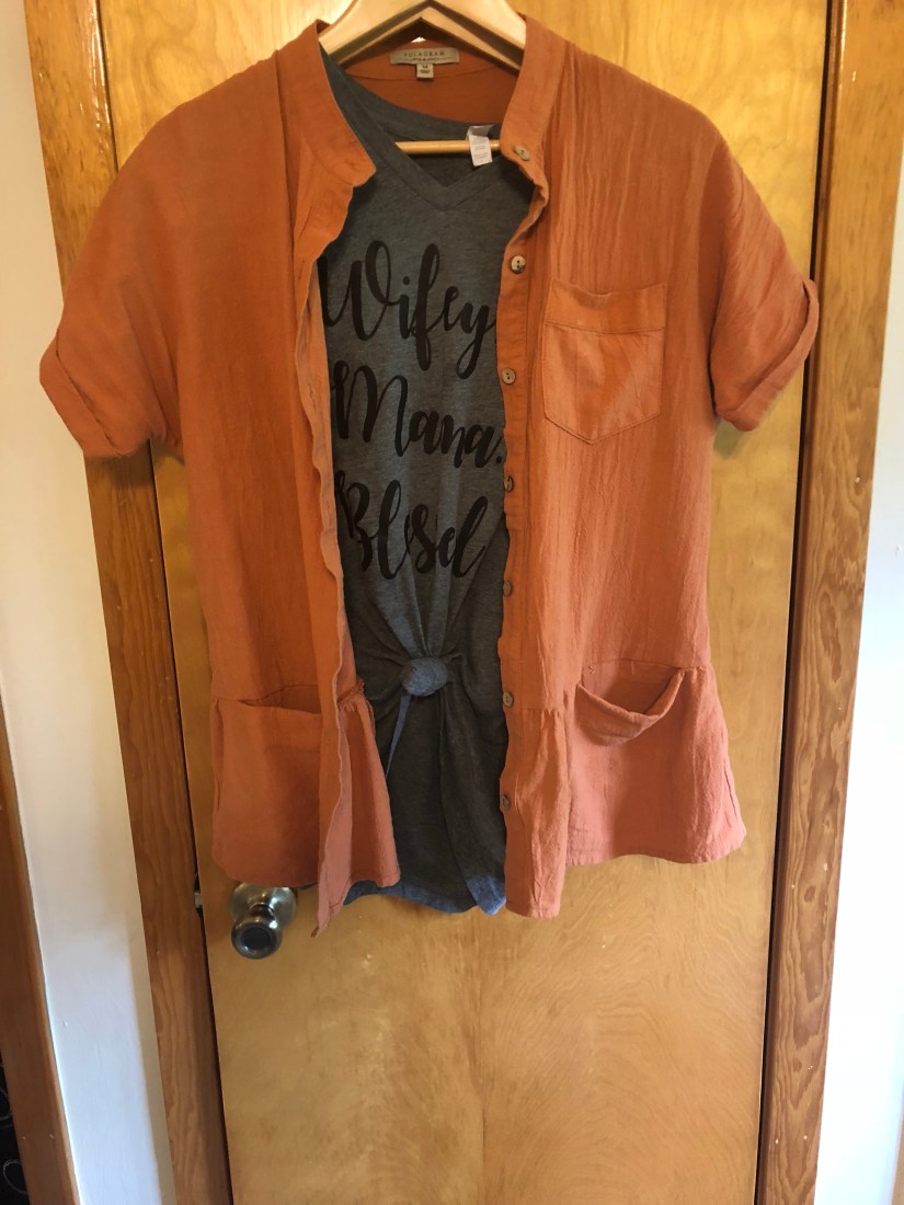 A top that she bought, with every intention to keep buttoned, was turned into several different outfits.
