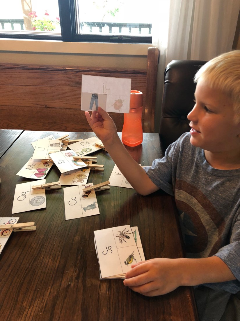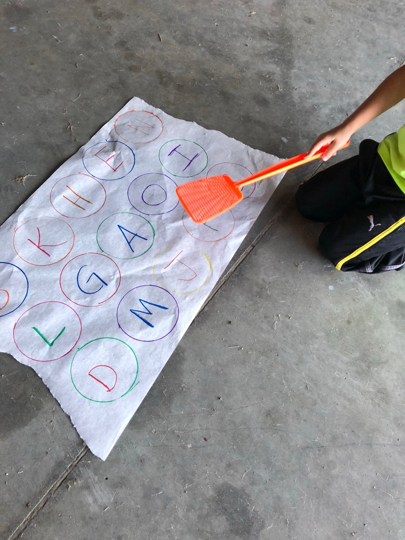 The last game we played was swat the letter. I said a letter, Sam found it and swatted it.