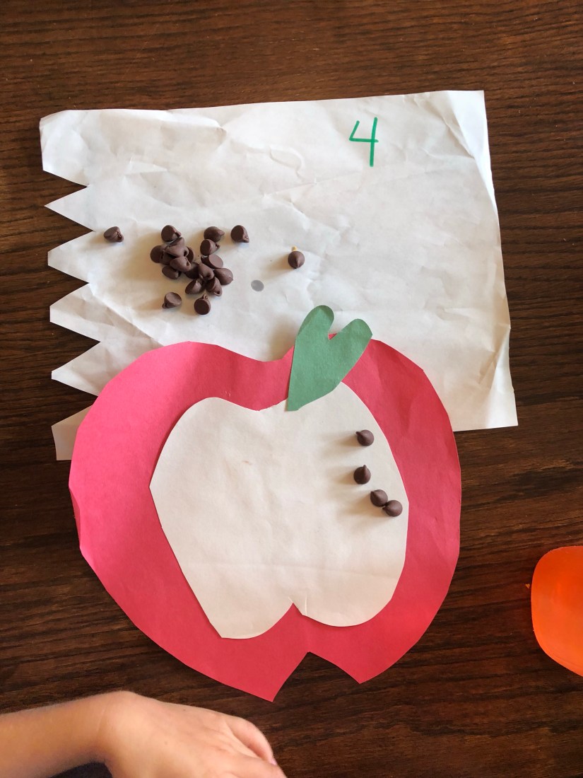 Apple seed Math- I wrote a letter, Sam counted out chocolate chips.
