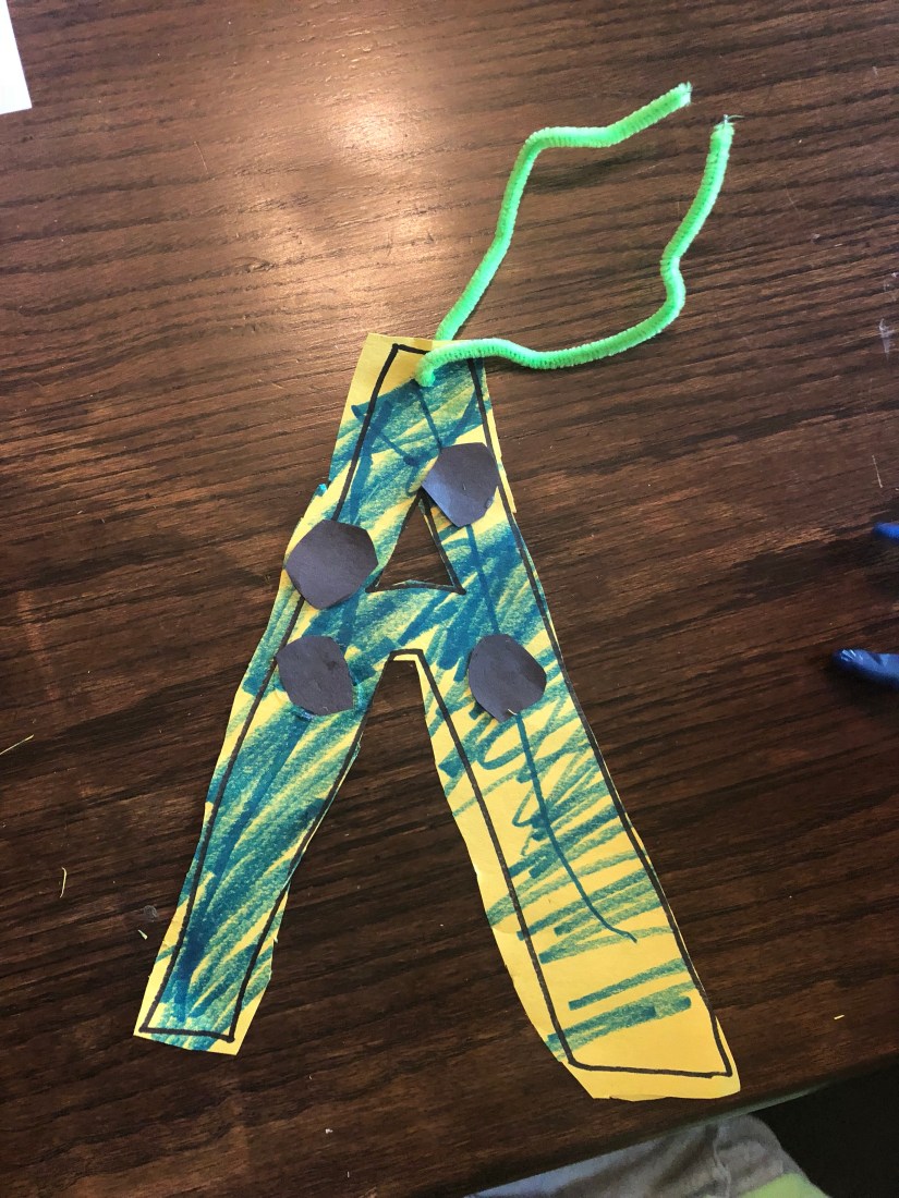 A is for Alligator. We will make a lot of these letter friends throughout the year.