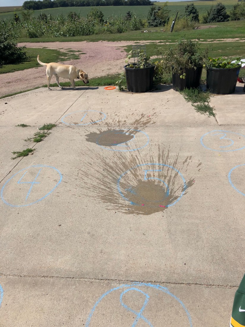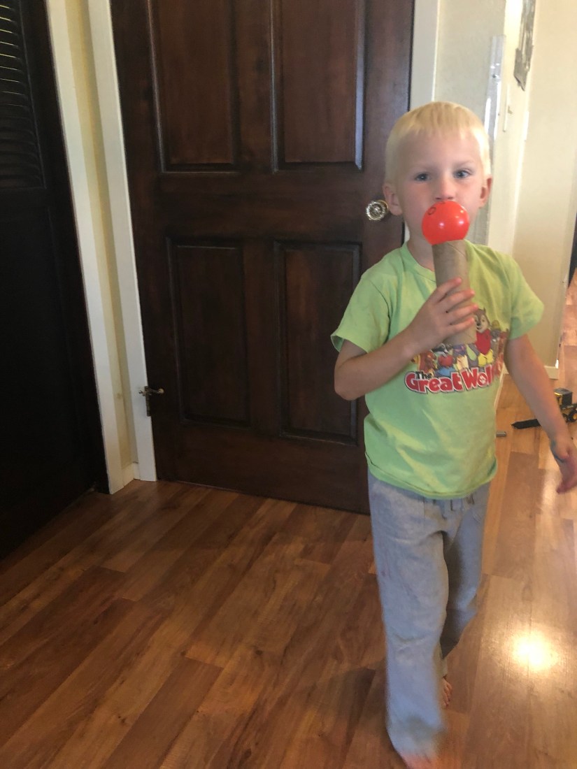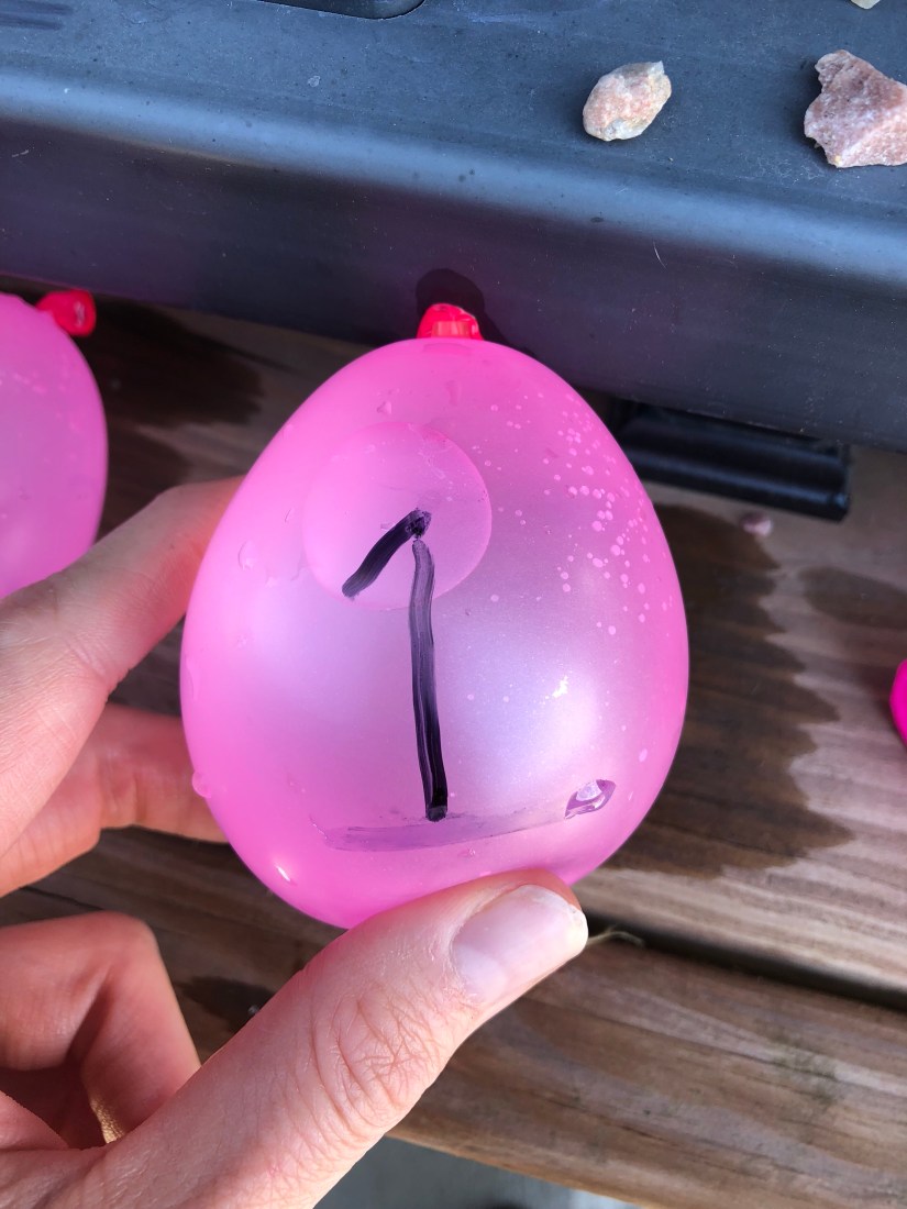To end our day, we played water balloon math. I wrote numbers on balloons and numbers on our driveway. I would hand Sam a balloon and he would throw it at the correct number in the driveway. Simple and entertaining.