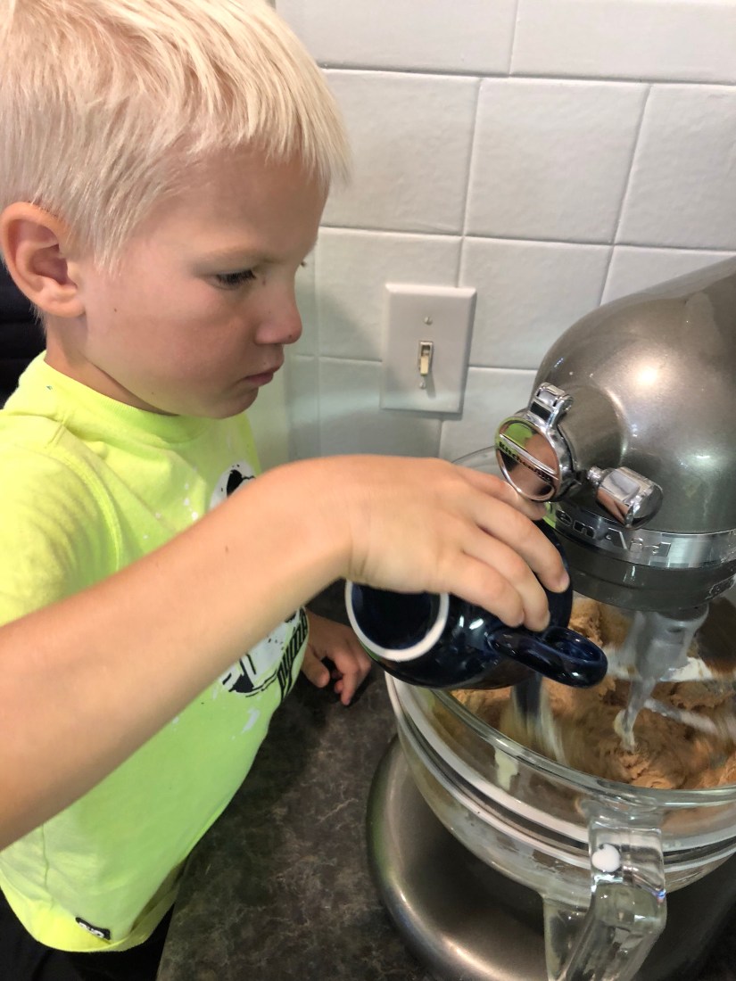 If you want to bake with kids, save yourself some hair pulling and take 5 minuets to prepare all of the ingredients before your little one helps.