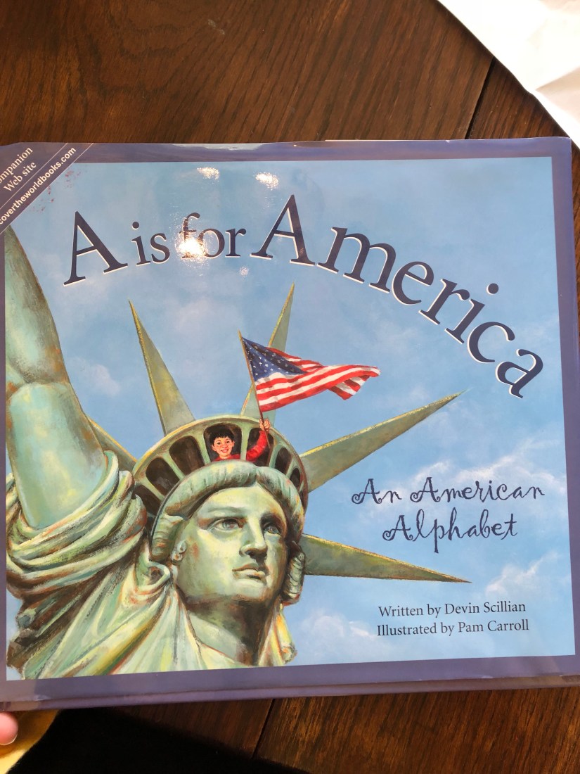 We then read A is for America. This book goes through the alphabet and discusses America. The pictures are phenomenal.