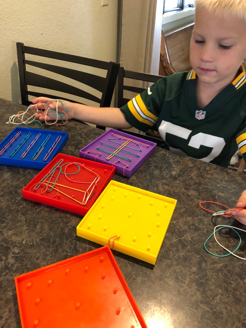 Today we kicked off our school year. Each day we start with the Lord’s Prayer, we fill in the calendar, and then I give Sam the choice of a puzzle, a learning toy, or a puzzle game.