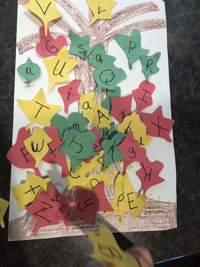 Our first activity for school was this alphabet tree. I’ve used this tree before in school, I keep my activities in a safe place so I can use them again.