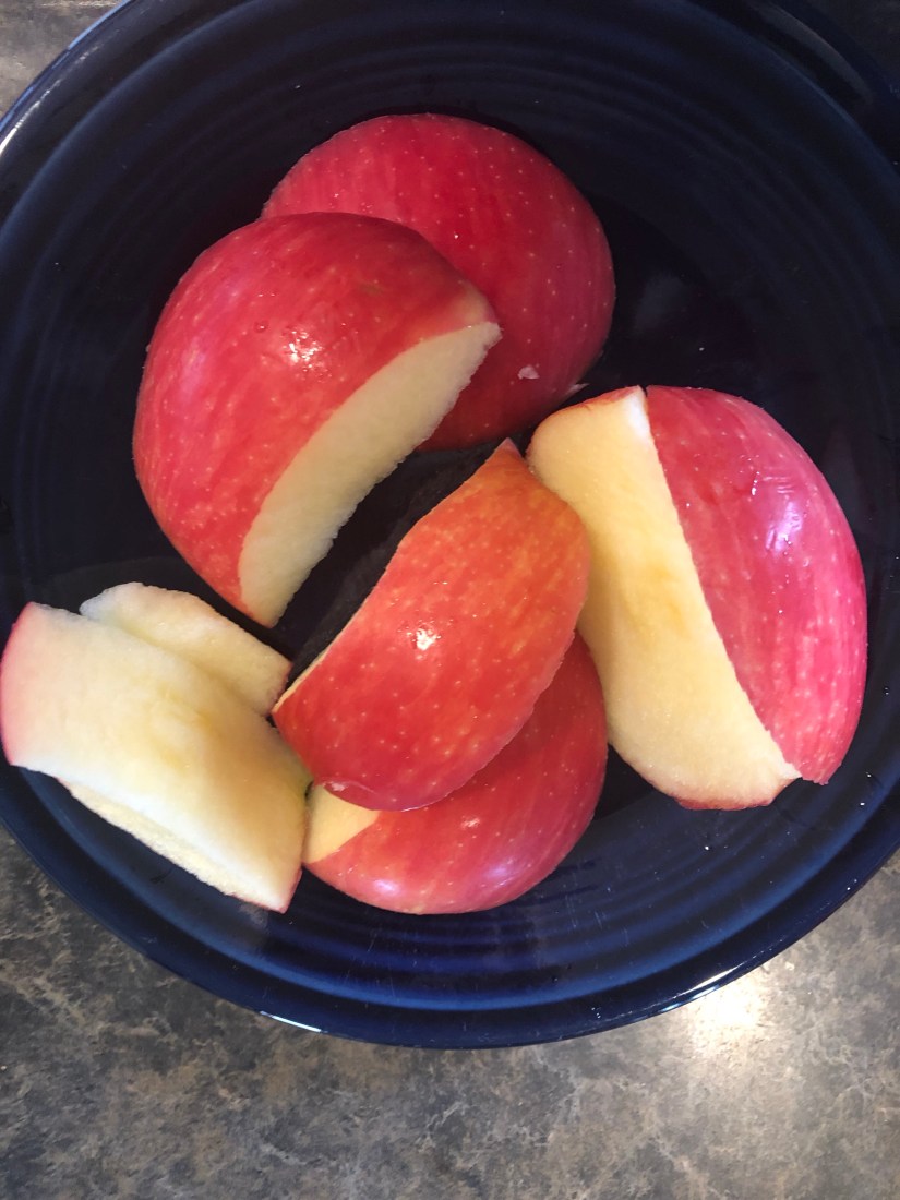 Apple tasting next. We talked about our senses while eating the apple. Was it crunchy? Is is sweet? What color?