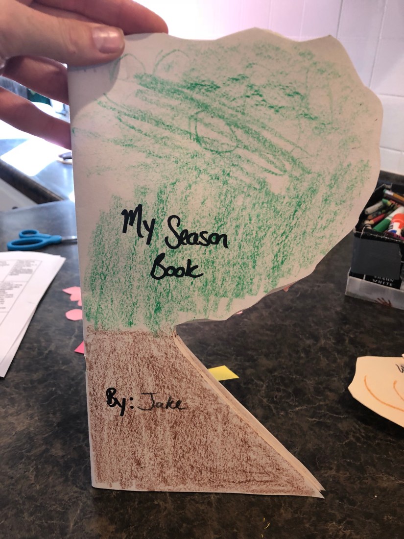 The Season book was next. I used card stock for this book. I’m showing the one I made with Jake a few years ago. Sam liked this activity.