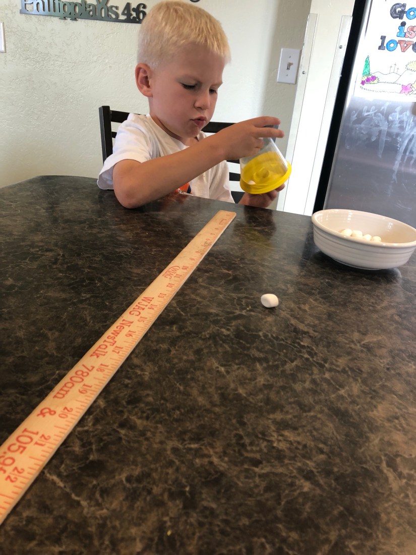 This next activity was super fun for Sam. I made a marshmallow shooter, next. I used a balloon and a plastic cup.