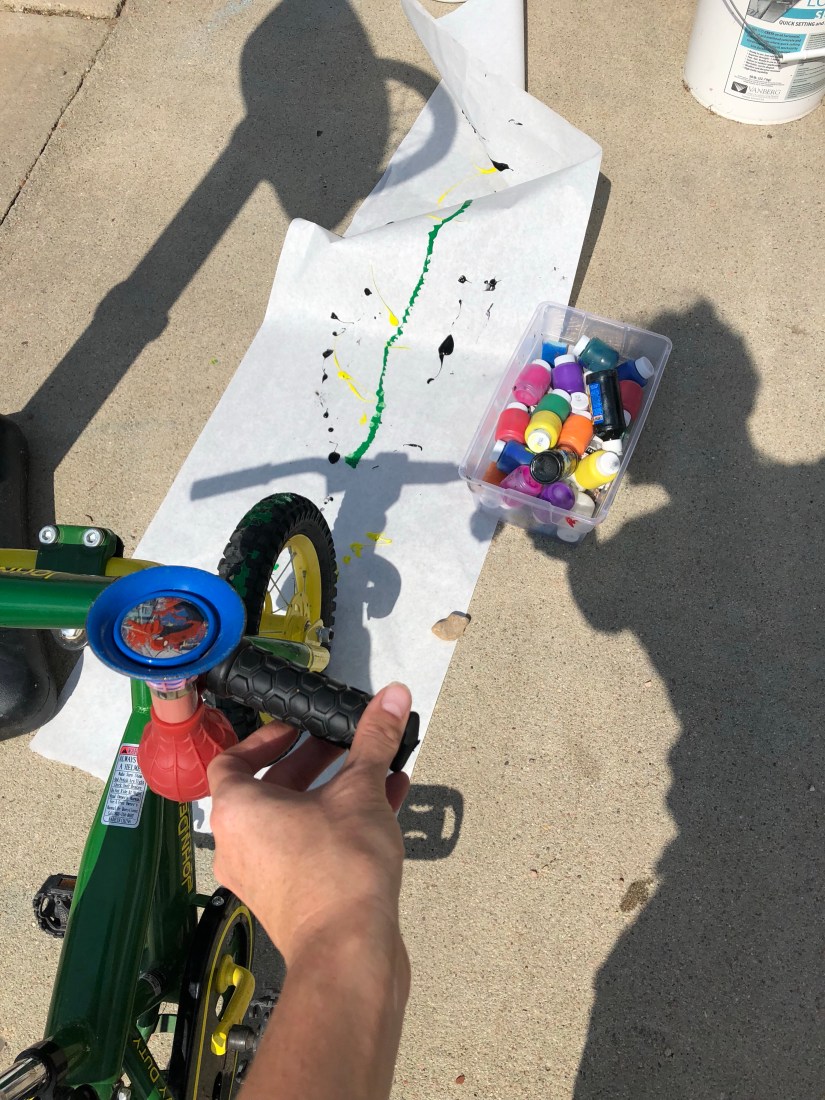 I wanted Sam to bike paint. But he is very new to biking without training wheels, so this was a disaster. We went on a bike ride later that evening. 😉