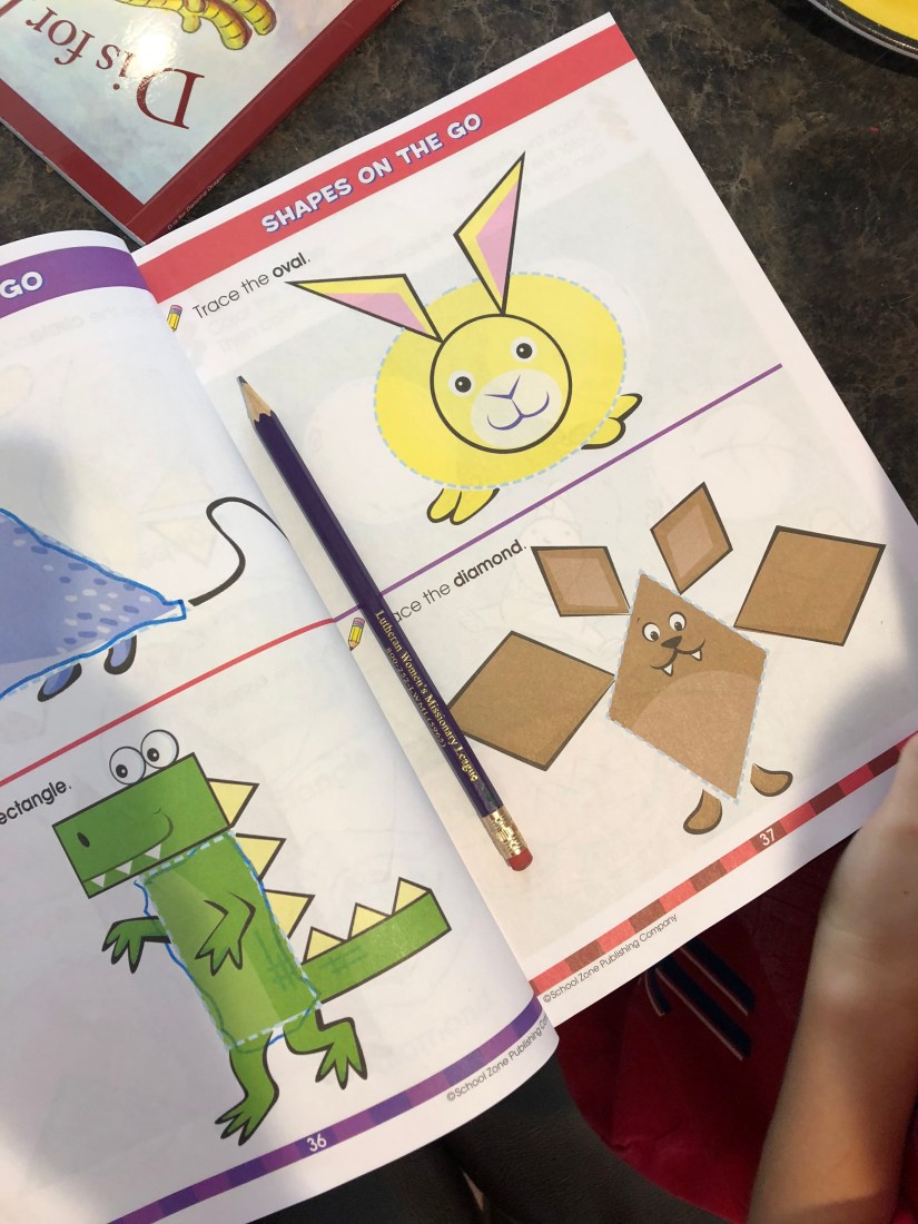 We used our preschool book next to practice writing shapes. Our preschool book- https://amzn.to/2IQZLDE