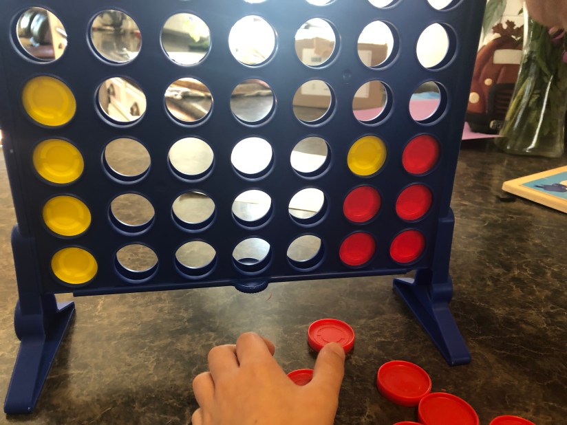 Our game for the day was Connect Four. I’m a terrible mother because I beat my poor child three out of three times. For the record I tried to help him beat me once, he just wouldn’t take my hints! Ha!