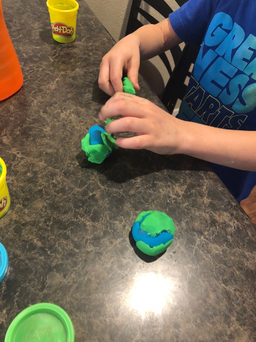 Sam played with play-doh, next. I helped him make an Earth.