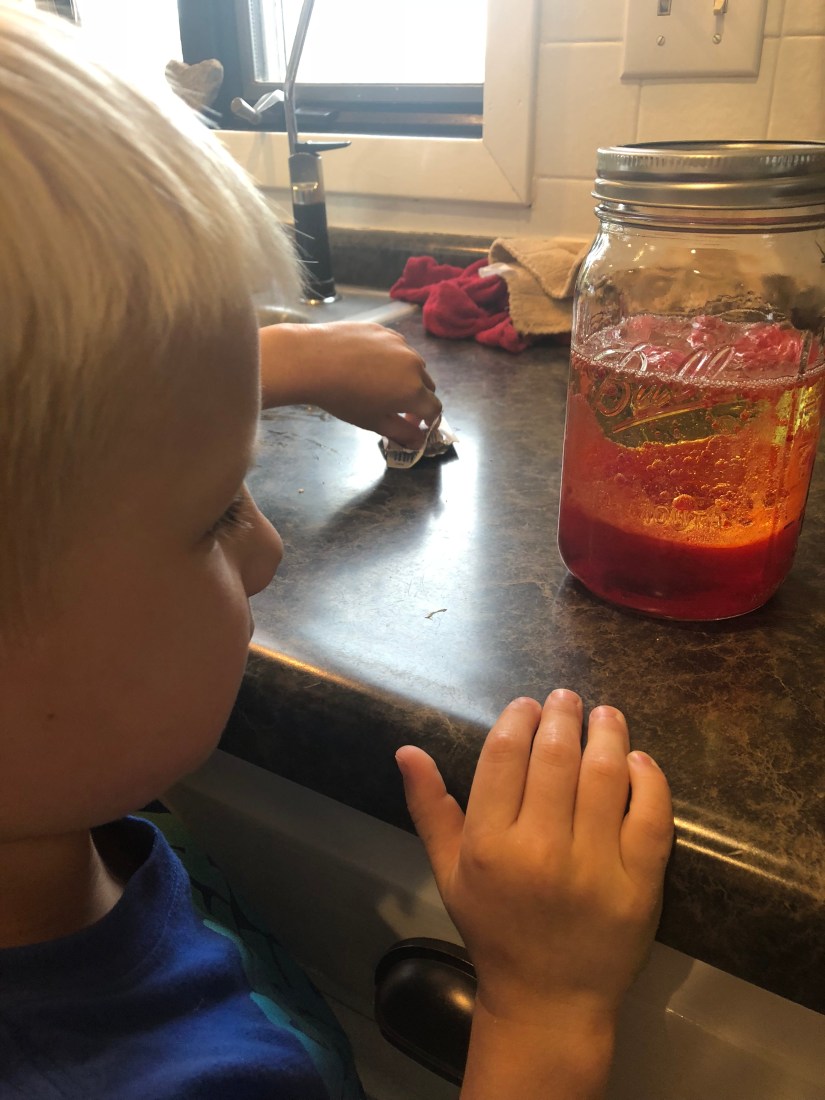 This was a HUGE hit in our house. We tried out the experiment when Jake got off the bus and when Dad came in from working.