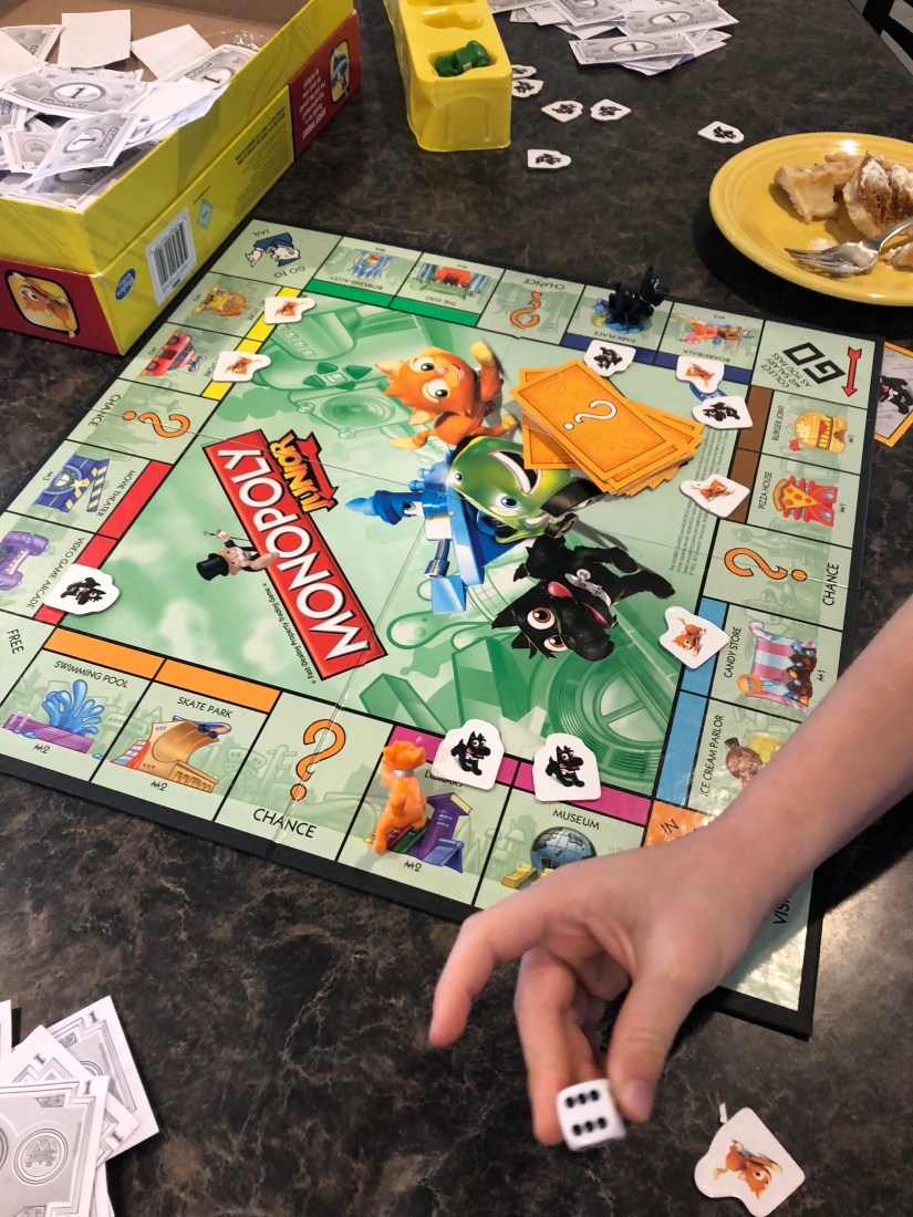 We played Monopoly Jr for the 84th time in two days. This has become a favorite!!
