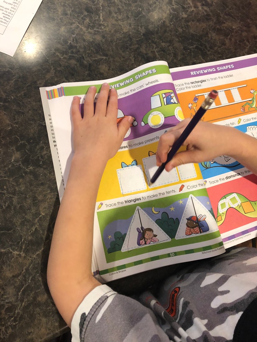 Sam used his activity book to practice shapes.