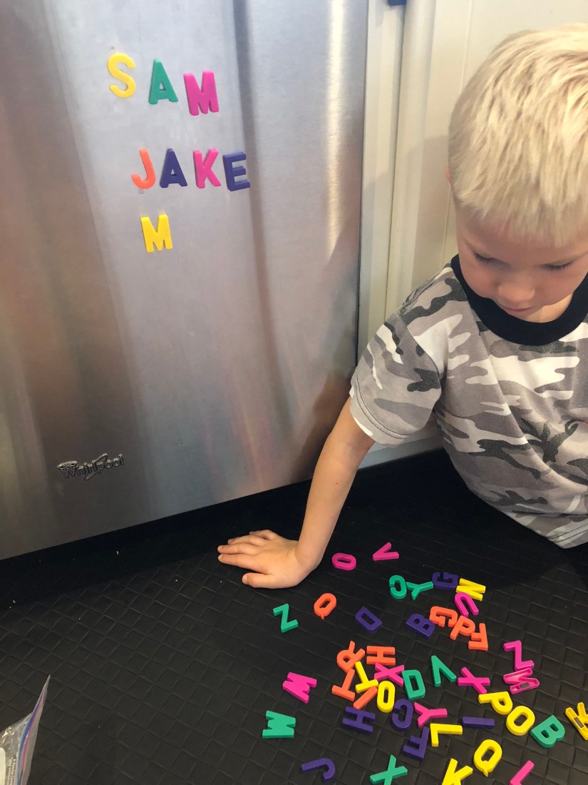 We used magnets to spell simple words and names.