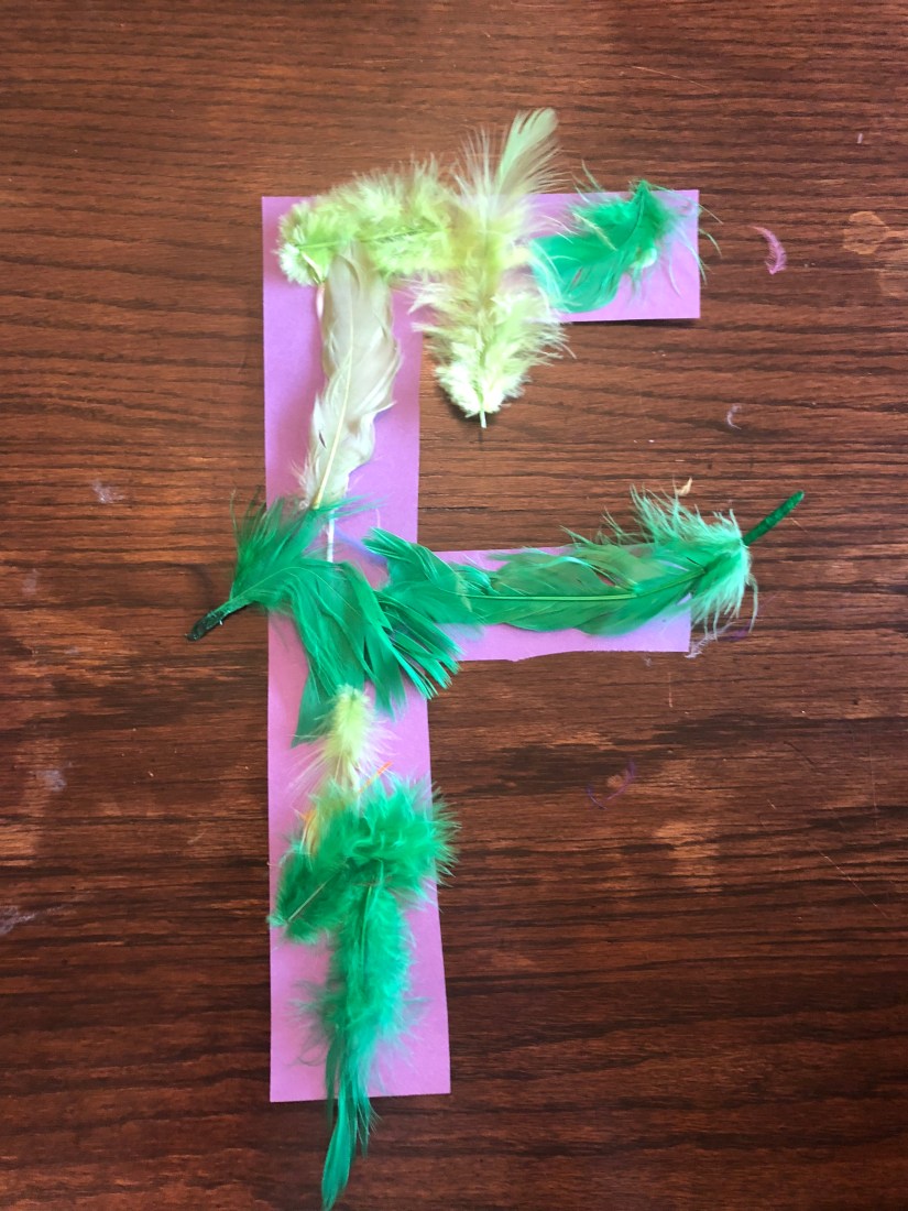 F is for fire. Even though it might have been fun for Sam to play with real fire…we stuck with making an f appear to be on fire.