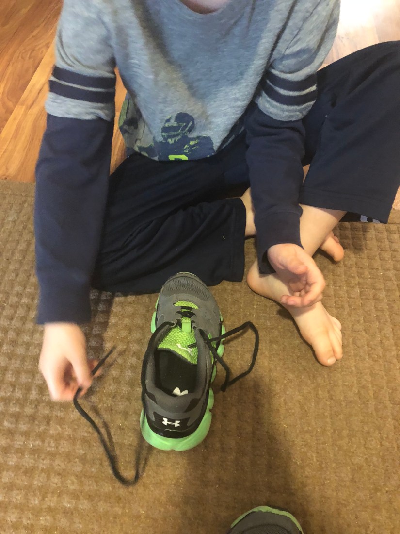 Sam and I worked on tying his shoes. Not successful…but we practiced.