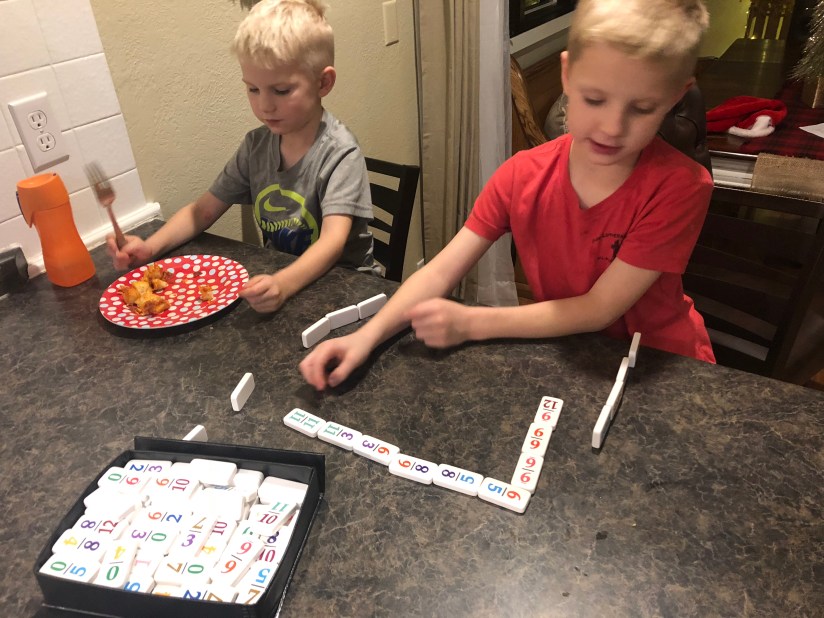 Sam chose these number dominos as his warm up. Jake and him played a fun game of dominos.