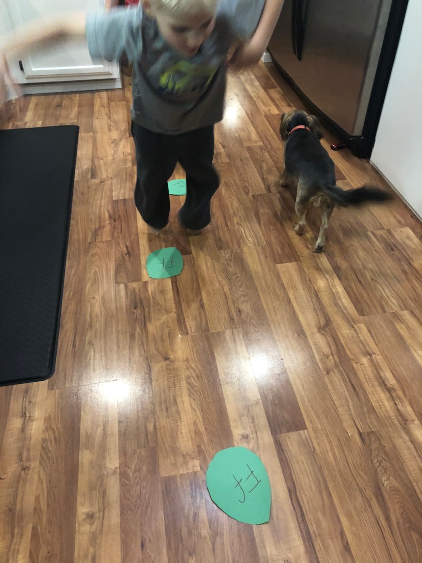 F is for Frog; we had some lily pad Math. We used our fish as counters.