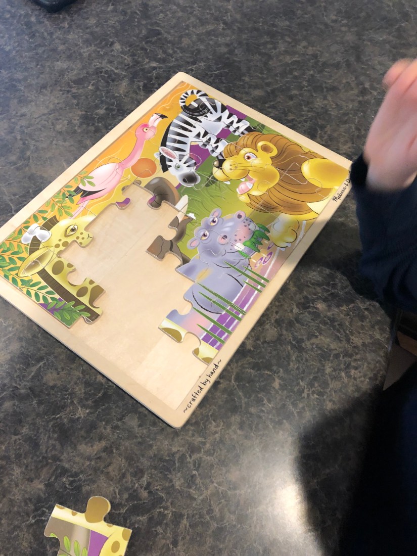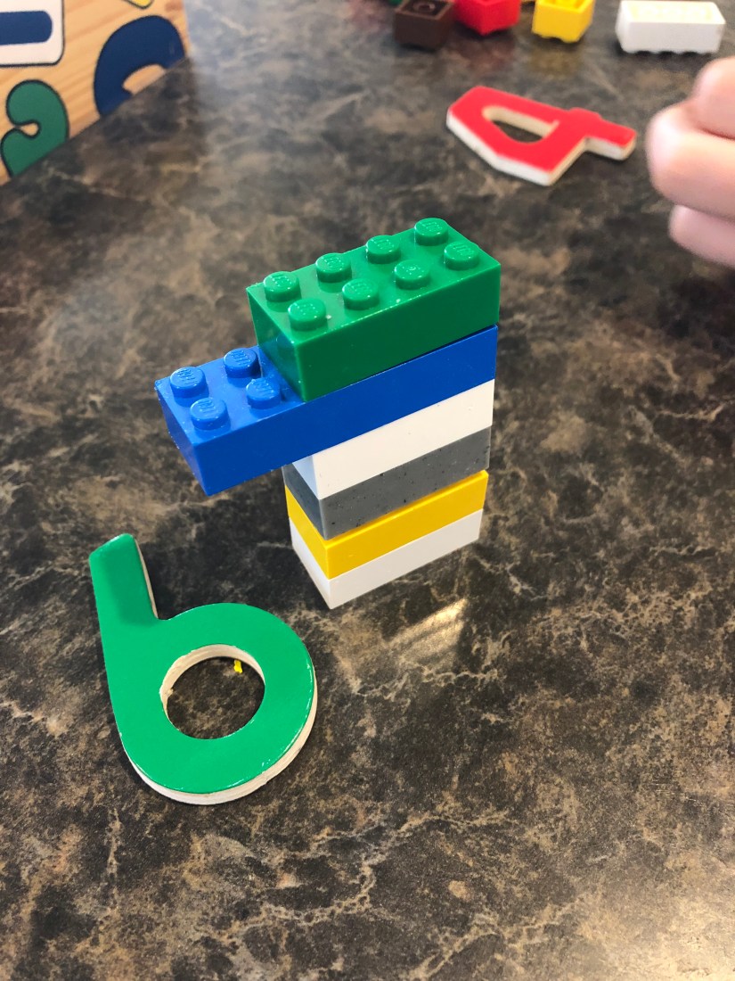 Legos and math. I’d pick and number and Sam would stack up the corresponding number of legos.