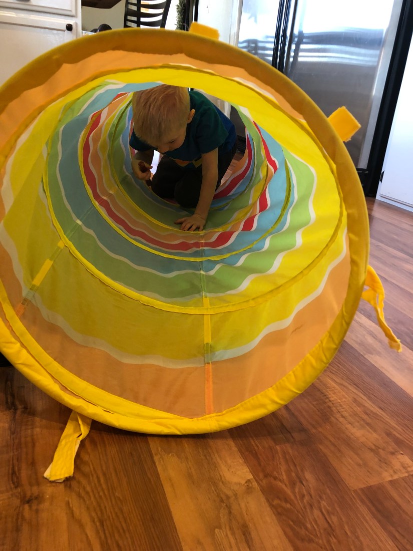 Just because this little guy is five, and he needs to move, I had him crawl through a tunnel for a while.